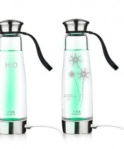 The first thing you’ll notice is the sleek, seamless, yet striking design of this water bottle, which is aesthetically-pleasing. Its lid is made type 304 stainless steel to ensure no water leakage as you carry the bottle around. The bottle is made of clear, high-quality borosilicate glass and is BPA-free. It is also heat-resistant. The bottle only takes three minutes to produce one cup of hydrogen-rich water, which is not only good for the skin but also slows down aging, improves digestion, boosts metabolism, reduces constipation, and more.Â